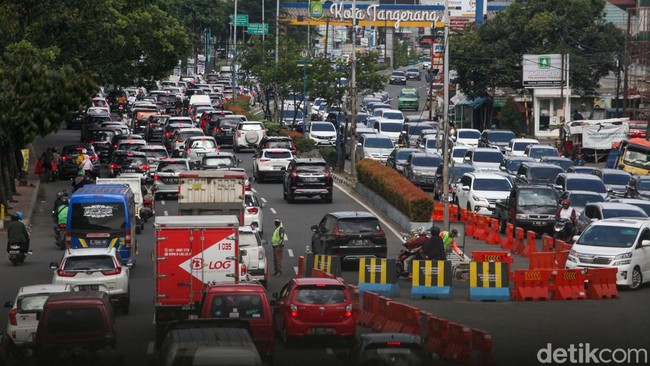 Tangerang - Jalan MH Thamrin Kota Tangerang arah Serpong Utara Tangsel terpantau macet siang ini. Kepadatan disebabkan volume lalin dan traffic light.