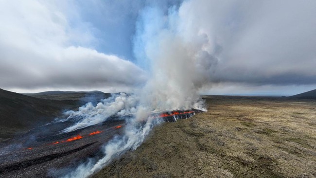 Islandia - Gunung berapi di Reykjavik, Islandia, meletus. Asap dan lava panas yang cukup besar mengalir.