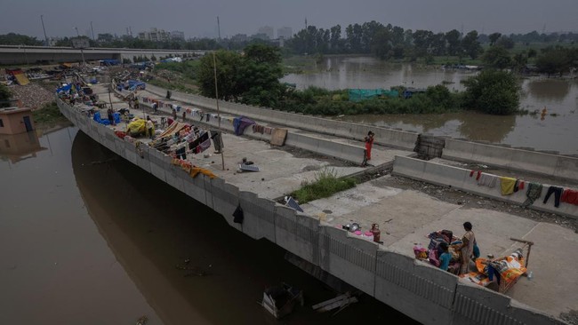 India - Sejumlah korban banjir di India memanfaatkan flyover di kawasan New Delhi. Intip foto-fotonya di bawah ini.