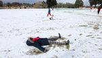 Peristiwa ini menghadirkan pengalaman musim dingin yang langka bagi penduduk setempat. (Shiraaz Mohamed/Anadolu Agency via Reuters) Β