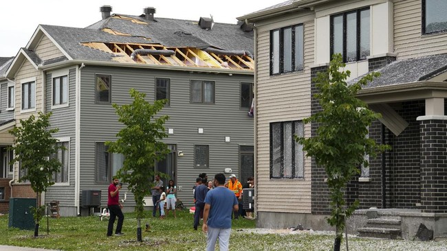 Kanada - Angin tornado menerjang Ottawa, Kanada, Kamis (13/7/2023) waktu setempat. Terjangan angin mengakibatkan atap rumah jebol. Ini penampakannya.