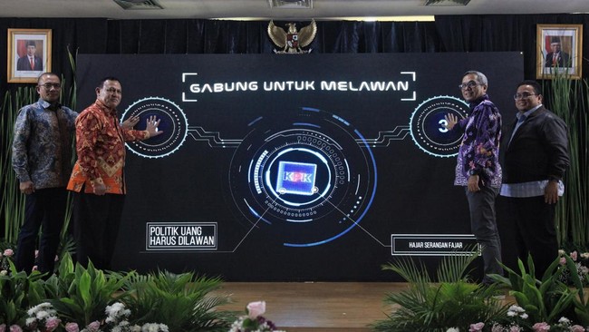 Jakarta - KPK meluncurkan kampanye anti politik uang 'Hajar Serangan Fajar'. Dalam kampanye ini KPK menggandeng KPU dan Bawaslu.