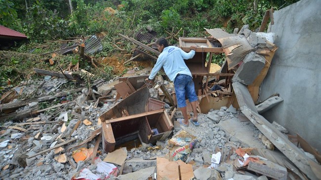 Penampakan Rumah Rusak Akibat Longsor di Padang
