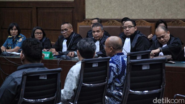 Jakarta - Tiga terdakwa divonis 12 tahun penjara dalam korupsi proyek pengadaan satelit slot orbit 123 derajat Bujur Timur (BT) Kemhan. Usai vonis mereka tersenyum lebar.