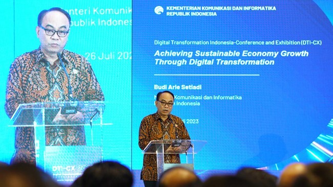 Menteri Komunikasi dan Informatika (Menkominfo) Republik Indonesia Budi Arie Setiadi, secara resmi membuka Acara Digital Transformation Indonesia Conference & Expo (DTI-CX) 2023, di Grand Ballroom JIEXPO Convention Centre Theatre, Kemayoran Jakarta.