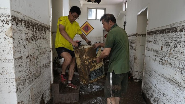 Beijing - Banjir akibat hujan deras di sejumlah wilayah China mulai surut. Warga berusaha membersihkan rumah mereka dari sisa-sisa banjir.