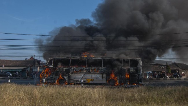 Potret Bus Wisata Hangus Terbakar di Jalan Utama Solo-Yogyakarta