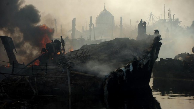 Sudah Belasan Jam, Kebakaran 51 Kapal di Tegal Belum Juga Padam
