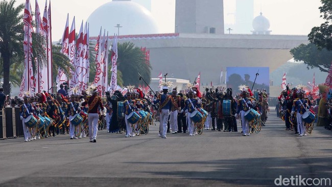 Jakarta - Kirab budaya Bendera Pusaka dalam rangka upacara peringatan detik-detik Proklamasi Kemerdekaan RI telah dilakukan. Bendera dikirab dari Monas ke Istana Negara.