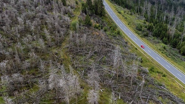 Jerman - Hutan di Pegunungan Harz tampak makin meranggas ulah kumbang kulit kayu. Maraknya kumbang buntut hutan yang mengering akibat perubahan iklim.