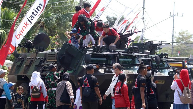 Kediri - Pameran alutsista tengah berlangsung di Kota Kediri, Jawa Timur, Sabtu (19/8/2023). Yuk lihat.