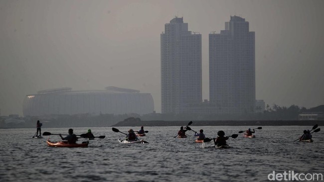 Jakarta - Polusi udara pekat masih menyelimuti Ibu Kota Jakarta beberapa pekan terakhir. Seperti apa potret polusi udara dilihat dari pesisir Jakarta? Ini foto-fotonya.