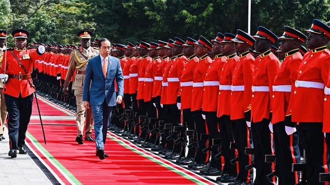 Kenya - Presiden Jokowi) melakukan kunjungan kerja ke Republik Kenya. Kedatangan Jokowi diambut dengan upacara kenegaraan oleh Presiden Republik Kenya William Ruto.
