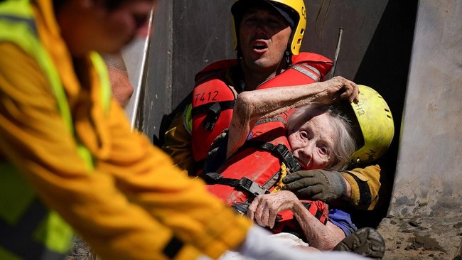 California - Petugas terus berusaha mengevakuasi korban yang terjebak akibat badai Hilary di California, Amerika Serikat. Salah satunya adalah para penghuni panti jompo ini.