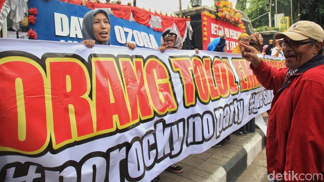Emak-emak Pendukung Rocky Gerung Demo PN Jaksel