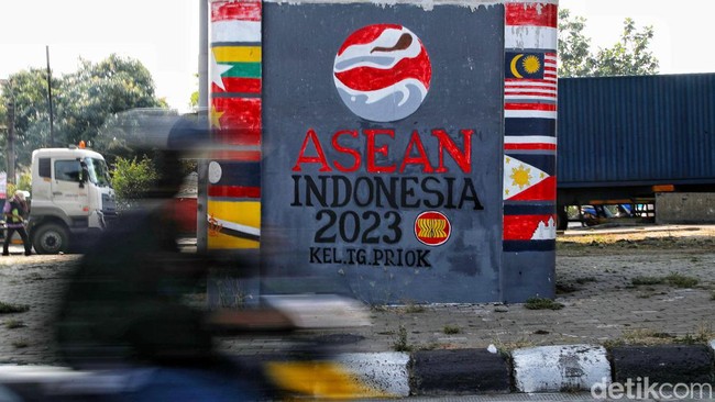 Jakarta - Mural bendera negara anggota ASEAN menghiasi jalanan Jakarta. Mural ini dibuat oleh petugas PPSU untuk menyambut KTT ASEAN pada 5-7 September 2023 mendatang.