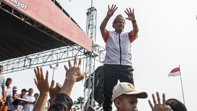 Palembang - Anies Baswedan menghadiri senam sehat bersama Partai Keadilan Sejahtera (PKS) di Benteng Kuto Besak, Palembang. Acara tersebut diikuti ribuan kader PKS.