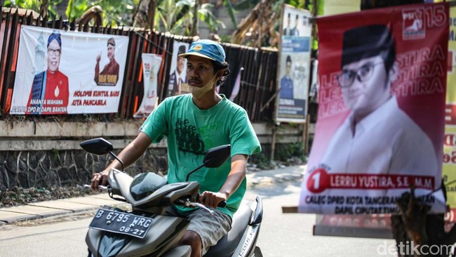 Ciputat - Spanduk hingga poster bergambar caleg 2024 mulai bertebaran di jalanan menjelang Pemilu 2024. Alat peraga kampanye tersebut dipasang di lokasi tak berizin.