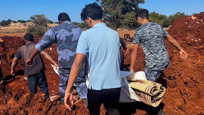 Libya - Setidaknya 2.300 orang tewas akibat banjir di Libya. Saat ini sebagian korban tewas telah dimakamkan, Selasa (12/9/2023) waktu setempat.