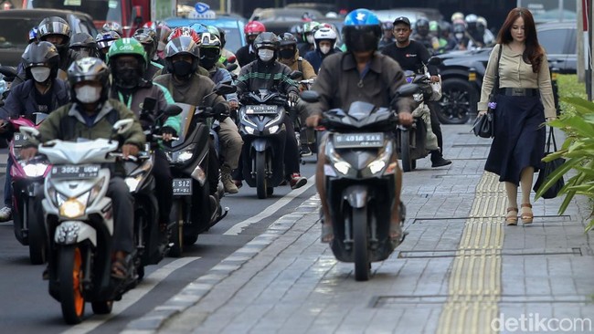 Jakarta - Trotoar harusnya steril dari kendaraan bermotor. Namun, masih saja ada pemotor yang ngeyel menerobosnya, seperti terlihat di kawasan Jalan Fatmawati, Jaksel.