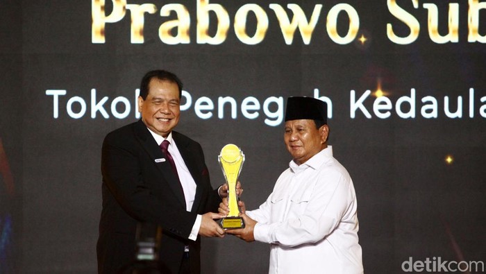Prabowo menerima detikcom Awards 2023 kategori Tokoh Peneguh Kedaulatan Negara. Β