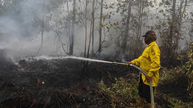 Kalimantan Tengah - Kebakaran hutan dan lahan (karhutla) masih terjadi di Desa Tumbang Nusa, Pulang Pisau, Kalimantan Tengah. Upaya pemadaman pun terus dilakukan.