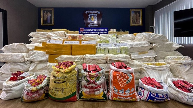 Thailand - Polisi anti-narkotika Thailand menyita narkoba senilai lebih dari US$8 juta (setara Rp 124 miliar) dalam salah satu penyitaan terbesar dalam sejarah.