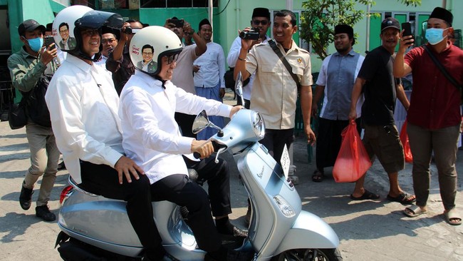 Momen Anies-Cak Imin Boncengan Vespa Saat Safari Politik di Jombang