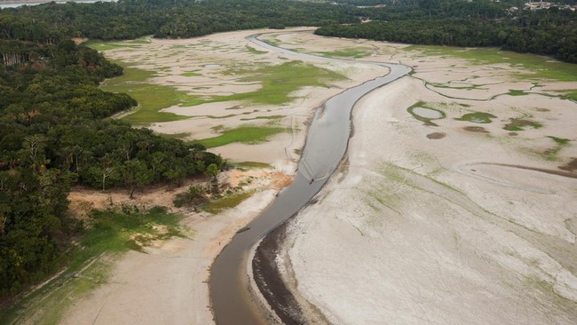 Brasil - Surutnya sungai-sungai di Amazon Brazil mengancam pasokan bagi masyarakat yang tinggal di komunitas terpencil. Begini potret dampak kekeringan dari udara.