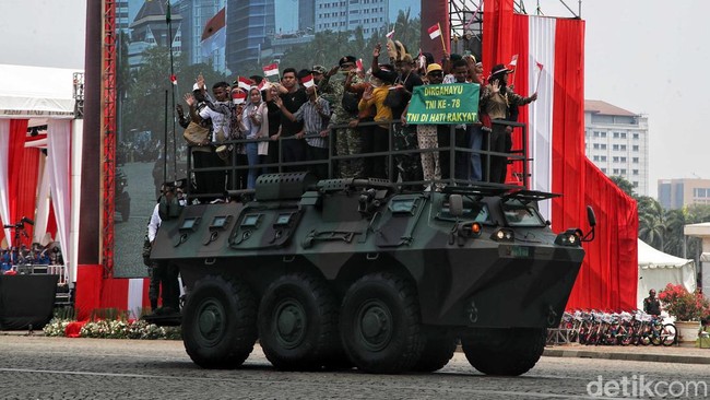 Jakarta - HUT ke-78 TNI di Monas, Jakarta, sukses menyedot perhatian warga. Mulai dari dewasa hingga anak-anak terlihat sangat antusias.