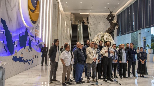 Jakarta - Ketum NasDem Surya Paloh angkat bicara terkait kasus dugaan korupsi yang menjerat Syahrul Yasin Limpo. Pernyataan itu disampaikan di NasDem Tower, Kamis (5/10).
