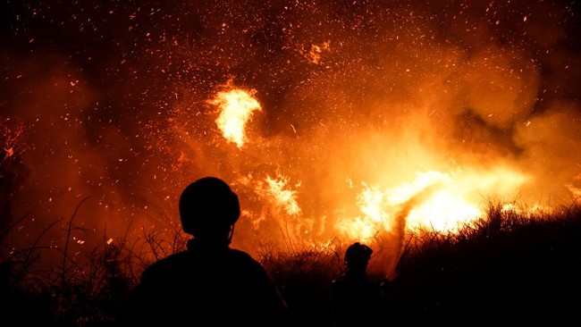 Petugas pemadam kebakaran bekerja untuk memadamkan api di lapangan terbuka, menyusul serangan Hamas di dekat sebuah rumah sakit di Ashkelon, Israel selatan 7 Oktober 2023. REUTERS/Amir Cohen.