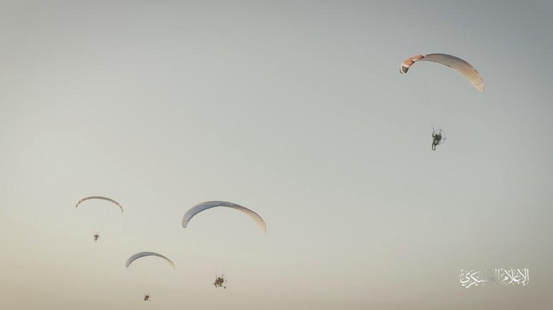Brigade Al Qassam menjadi sorotan usai sukses menembus perbatasan Israel dan mengklaim menyandera belasan prajurit pada serangan Sabtu (7/10) akhir pekan lalu. Pasukan sayap kanan Hamas ini menyerbu Israel dari berbagai arah mulai dari darat, udara, dan laut. (Izz el-Deen al-Qassam Brigades via Telegram/via REUTERS)