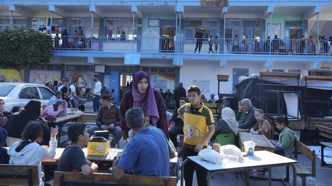 Gaza - Perang yang terjadi antara Israel dan Hamas membuat warga Palestina memilih mengungsi. Mereka mengungsi ke sekolah milik PBB.
