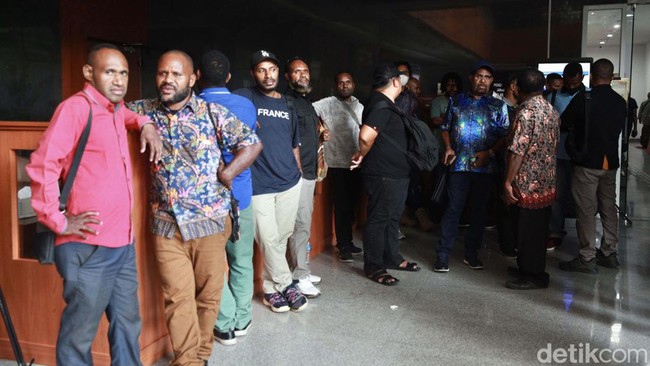 Jakarta - Lukas Enembe akan menghadapi sidang vonis di Pengadilan Tipikor, Jakarta. Para pendukungnya tampak sudah memenuhi Pengadilan Tipikor.