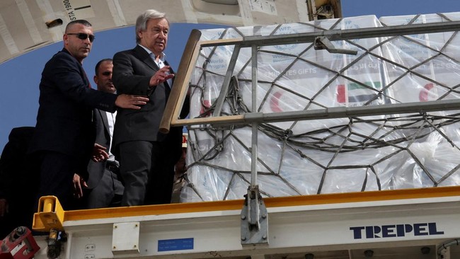 Mesir - Sekretaris Jenderal PBB Antonio Guterres mengunjungi Mesir. Ia mendesak puluhan truk bantuan yang terjebak di perbatasan Rafah bisa diizinkan masuk ke Gaza.