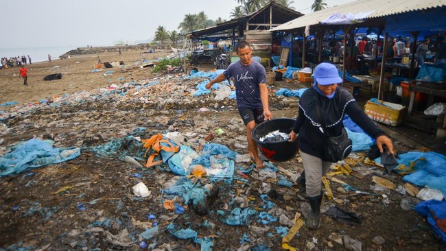 Padang - Sampah plastik bekas pembungkus ikan mengotori pantai di Padang. Sampah itu dihasilkan dari aktivitas jual beli di TPI dan pasar tradisional Banda Aia.