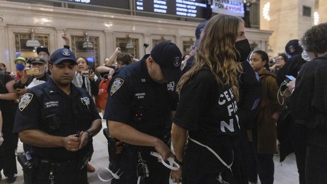 New York - Lebih dari 200 demonstran pro-Palestina ditangkap oleh Kepolisian New York, Amerika Serikat. Mereka ditangkap karena membuat lumpuh Stasiun Grand Central.