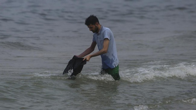 Gaza - Warga Palestina menggunakan air laut untuk mandi dan mencuci. Mereka terpaksa menggunakan air laut akibat kekurangan air yang terus berlanjut di Jalur Gaza.