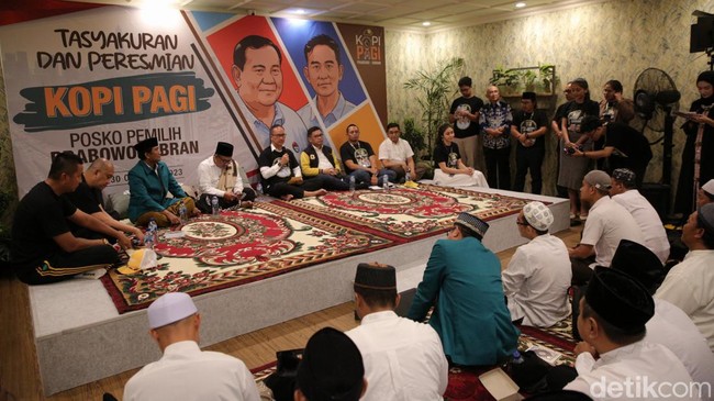 Jakarta - Capres Prabowo Subianto hadir dalam peresmian Posko Pemilih Prabowo-Gibran (Kopi Pagi) di kawasan Kebayoran Baru, Jakarta Selatan.