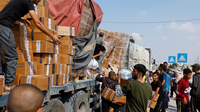 Momen Warga Palestina Bantu Truk Muat Bantuan yang Jatuh di Jalan