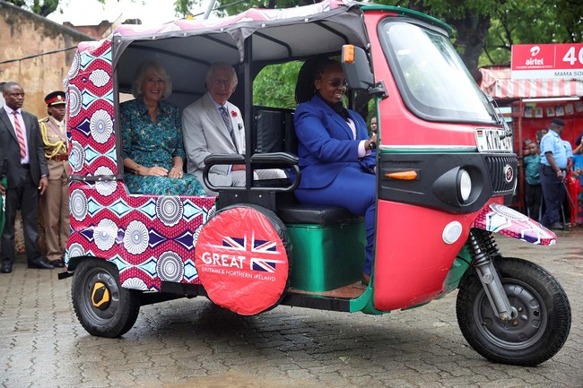 Kenya - Raja Charles dan Ratu Camilla melakukan kunjungan ke Kenya, Jumat (3/11/2023). Raja dan ratu Inggris itu sempat menaiki bajaj di sela-sela kunjungannya.