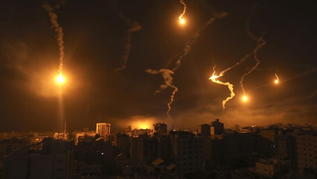 Penampakan Mencekam Langit Gaza Diterangi Suar Pasukan Israel