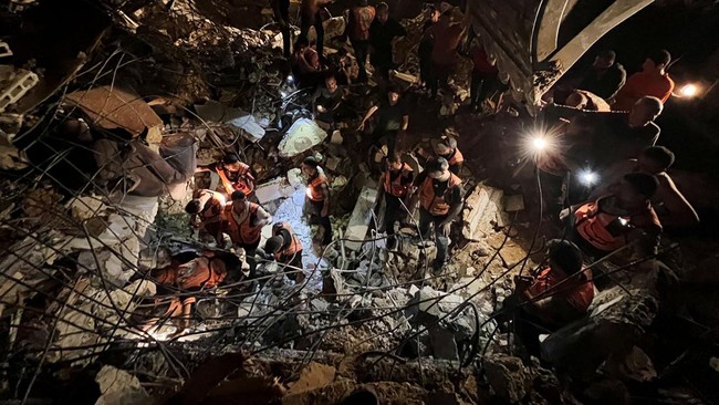 Potret Tim Penyelamat Kerja Siang-Malam Cari Korban Serangan Israel