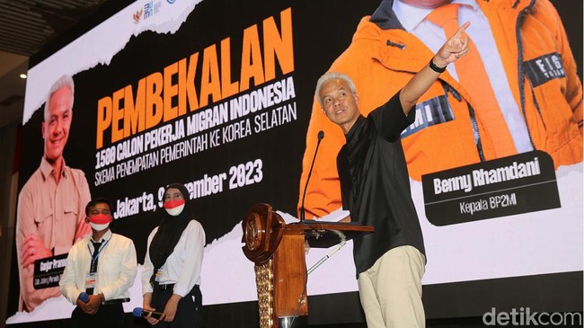 Jakarta - Sebanyak 1.500 pekerja migran Indonesia diberangkatkan ke Korea Selatan. Ganjar Pranowo turut memberikan pembekalan kepada mereka.
