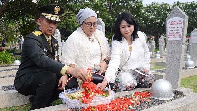 Jakarta - Kepala Staf Komando Garnisun Tetap I/JKT Brigjen TNI Arkamelvi Karmani melakukan tabur bunga di TMP Kalibata. Tabur bunga itu untuk memperingati Hari Pahlawan.
