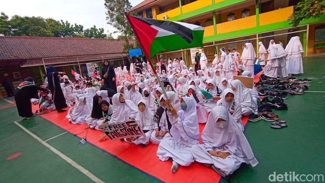Bogor - Ratusan siswa Daar el-Salam, Kabupaten Bogor, menggelar aksi peduli Palestina. Kegiatan diisi dengan doa dan pengumpulan donasi.