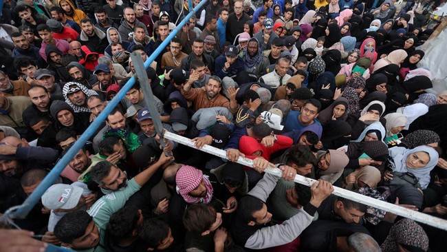 Tumpah Ruah Warga Gaza Serbu Bantuan Tepung