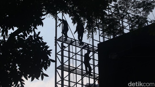 Spanduk Ajakan Pemilu Damai, Aman dan Tertib Mejeng di Bundaran HI