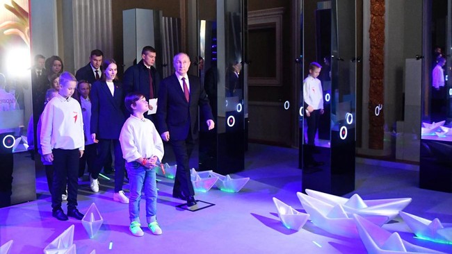 Rusia - Presiden Rusia Vladimir Putin mengunjungi pameran besar prestasi Rusia. Dalam kesempatan itu, Putin ditunjukkan simulasi tombol nuklir.